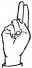 На ћирилици написано СОЊА КРШИЋ састоји се из 9 слова [?]. Исписано ћириличном једноручном азбуком за глувонеме: